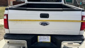The easiest method: two people. One person runs a tape measure across a horizontal body line on the vehicle – fully extended, pulled tight, readable from the front. The second person steps back and takes the straight-on photo with the tape measure visible and the number clearly legible in the frame.