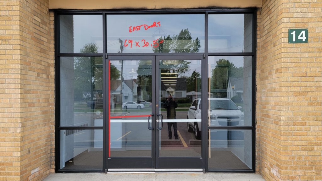 The one thing people consistently get wrong with storefronts: don’t assume all your windows are the same size. They almost never are. Even a row of windows that looks perfectly uniform will typically have small variations from pane to pane. When graphics are supposed to line up across multiple windows, those fractions of an inch add up fast.