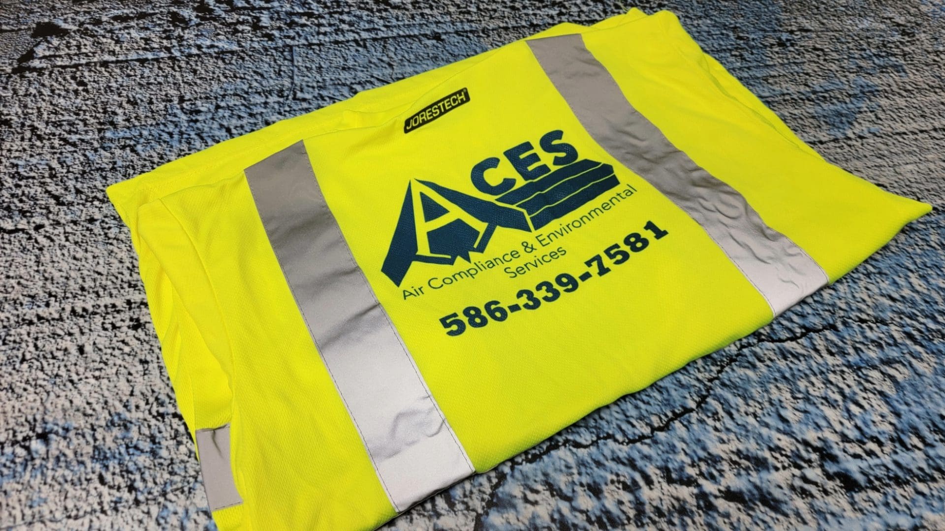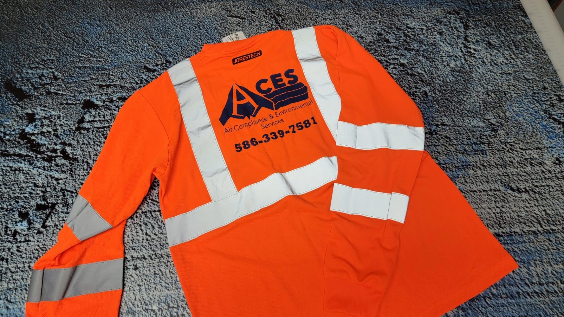 In the realm of air compliance and environmental services, safety is paramount. In line with OSHA regulations, companies like ACES (Air Compliance and Environmental Services) are required to have their employees wear safety colors while performing their duties. To meet this requirement and capitalize on a branding opportunity, ACES sought our expertise for custom-printed safety shirts for their employees.