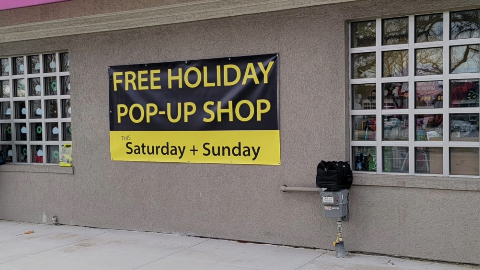 Eastpointe FreeStore, a community-centered initiative aimed at addressing economic inequality, was organizing a seasonal pop-up shop in a rented space. The challenge? They needed temporary but high-impact signage to draw the public’s attention to their event.