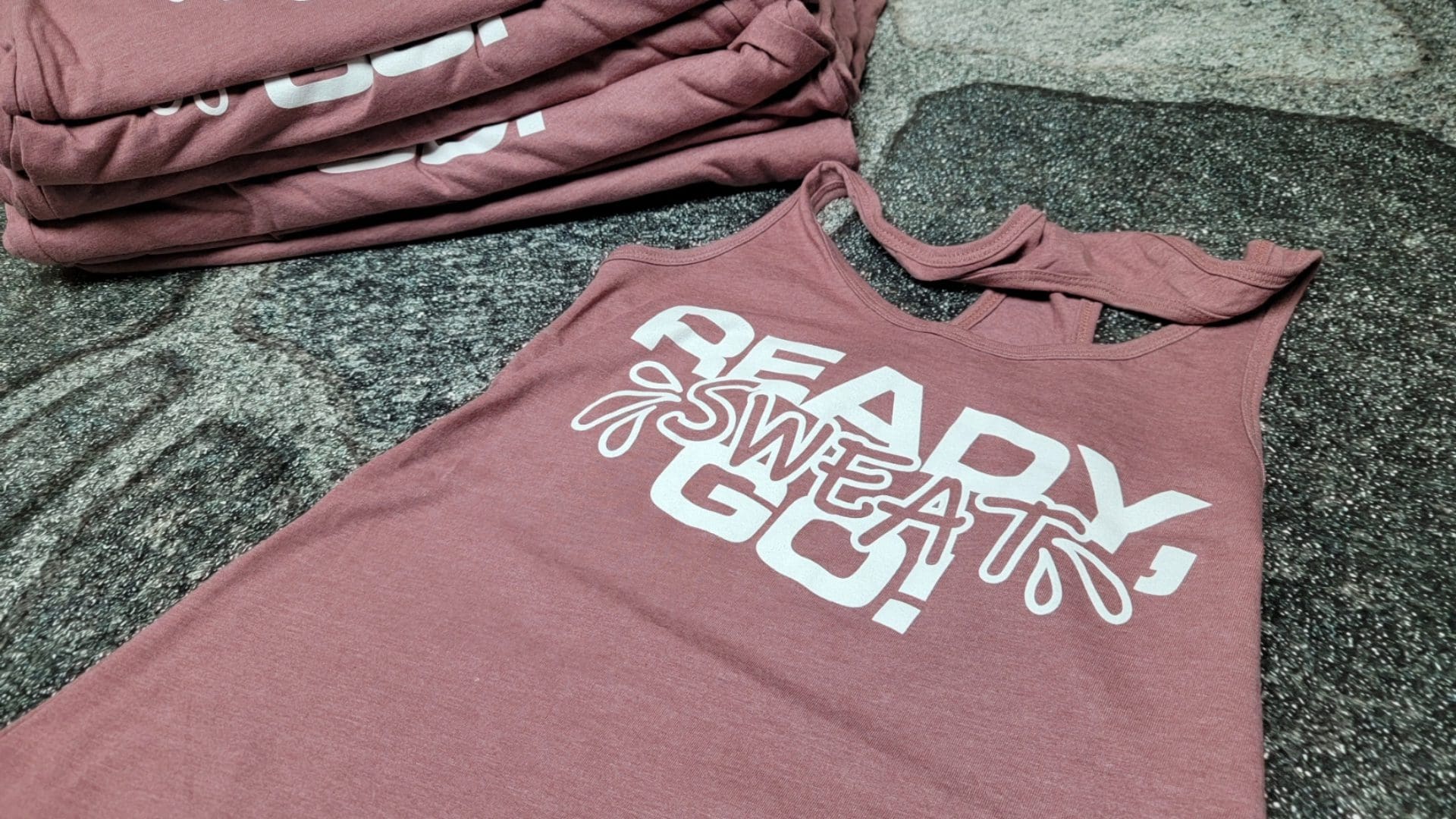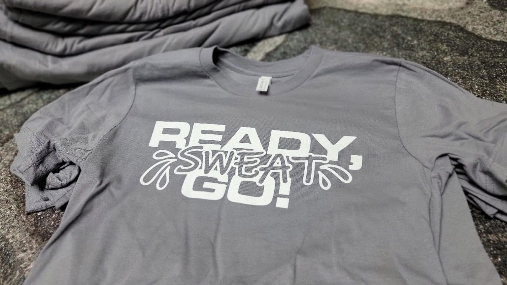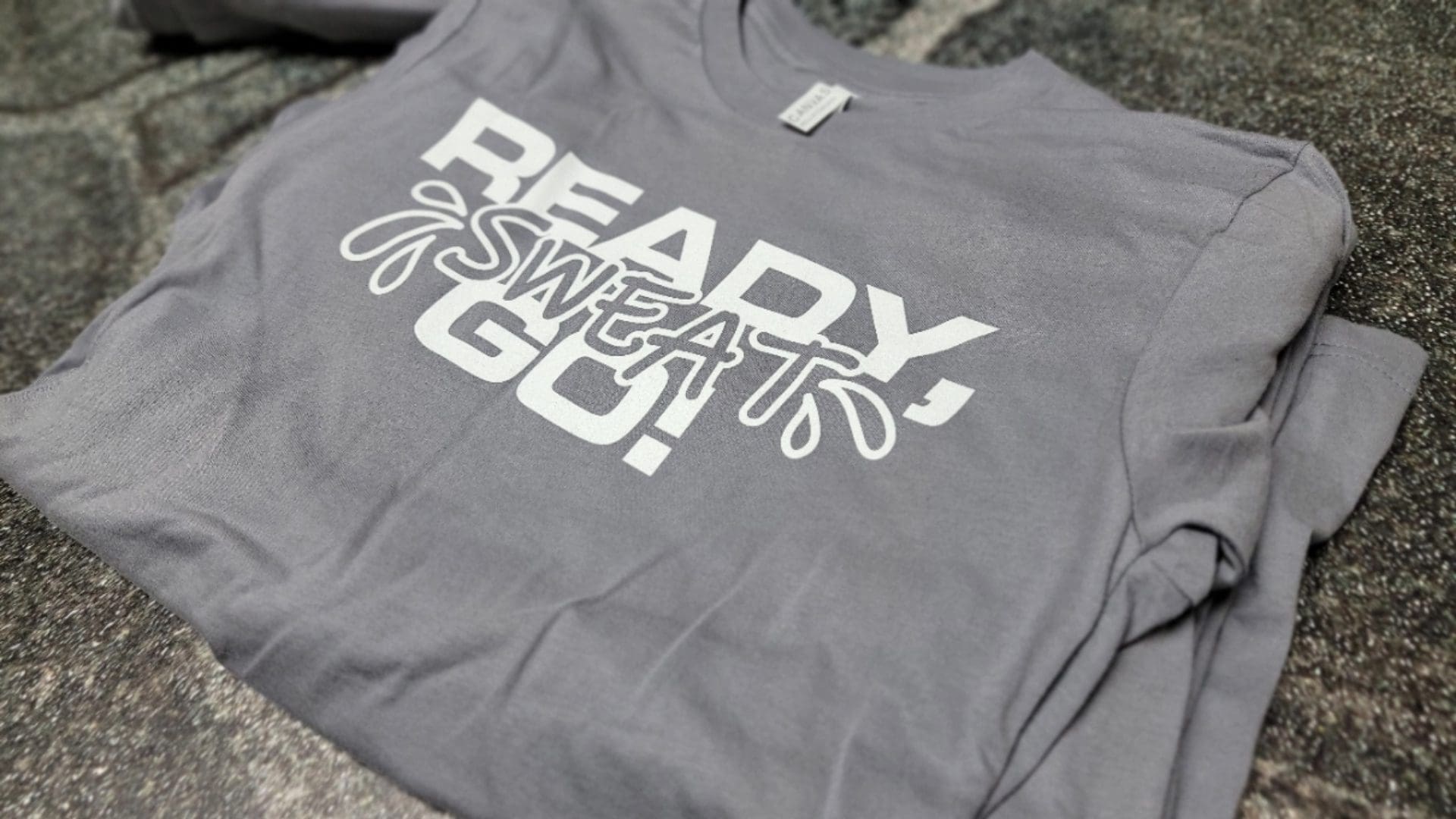 We chose Bella + Canvas shirts for this project due to their high-quality feel, which we knew would be appreciated by Fraser Jazzercise’s clientele. Our team then crafted a playful design incorporating one of the studio’s popular sayings – “Ready Sweat Go!” The design was printed in a crisp, 1-color white on the front of the shirt, creating a striking contrast.