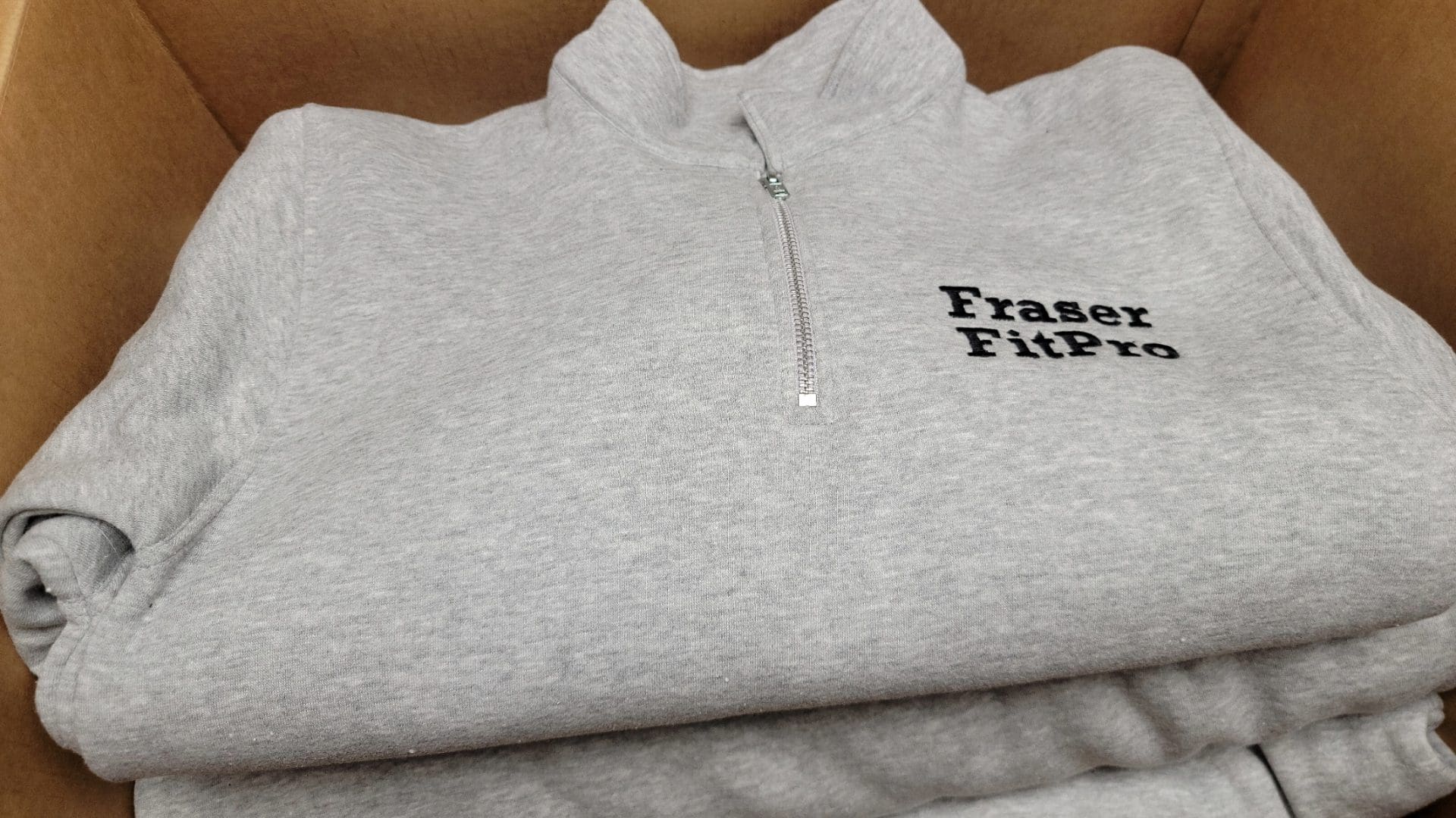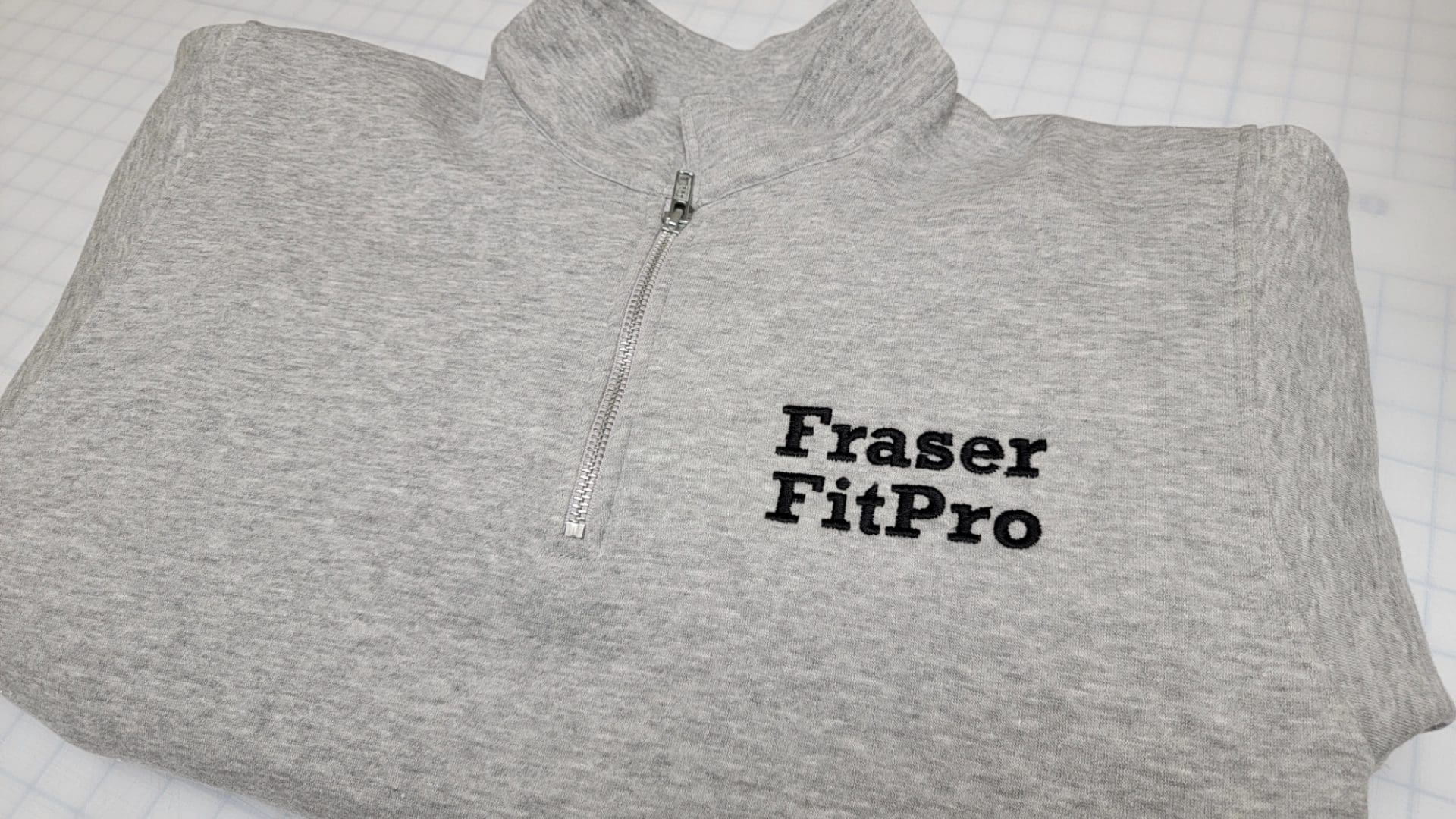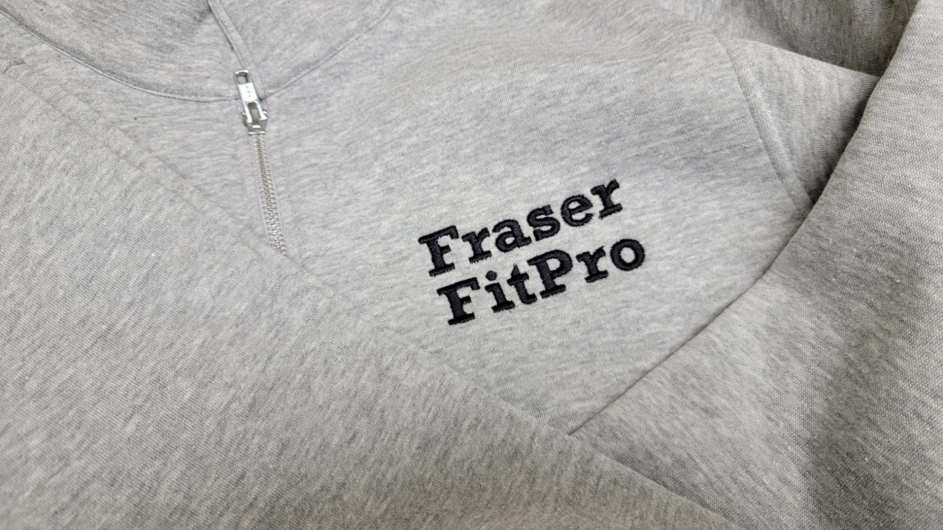For this project, we opted for Bayside Unisex 1/4 Zip Fleece sweatshirts, renowned for their comfort and durability. To align with Jazzercise Fraser’s branding, we embroidered “Fraser FitPro” to the left of the zipper, creating a subtle yet impactful design.