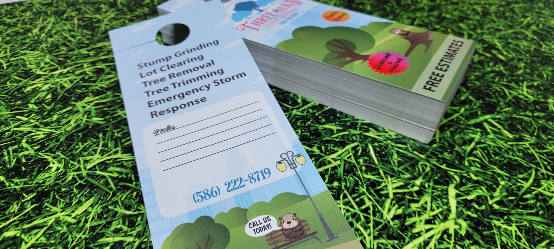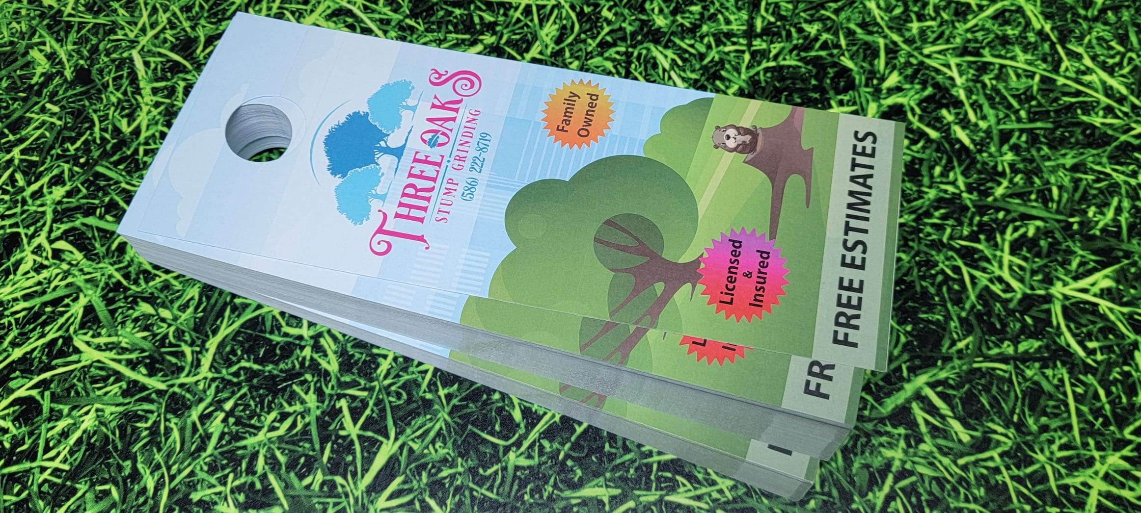 Moreover, the door hangers proved to be an effective marketing tool, successfully promoting Three Oaks’ new stump grinding service while reinforcing their commitment to sustainability and community engagement.